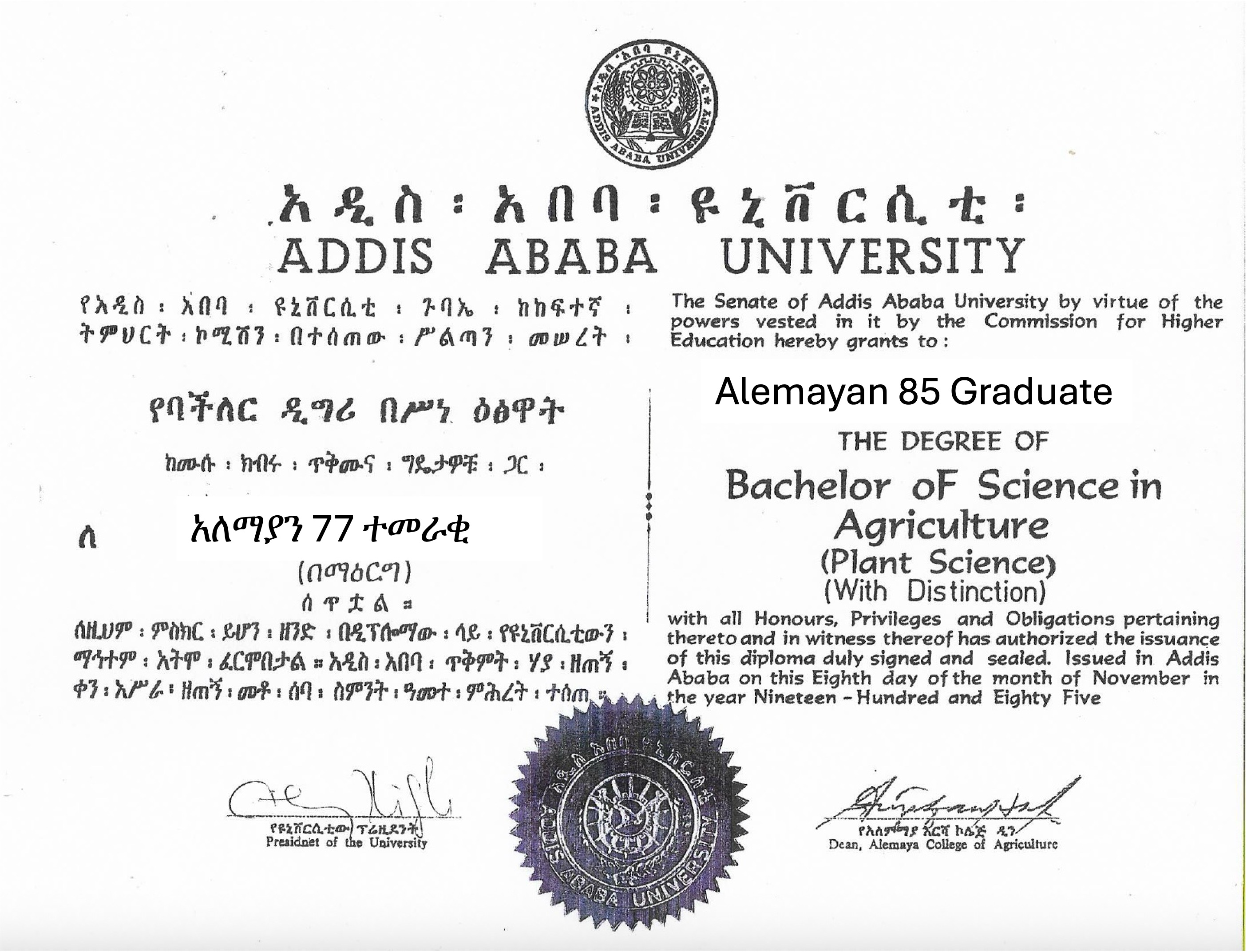 - We were the final cohort to graduate under the College of Agriculture before its transition into Alemaya University of Agriculture in 1985.