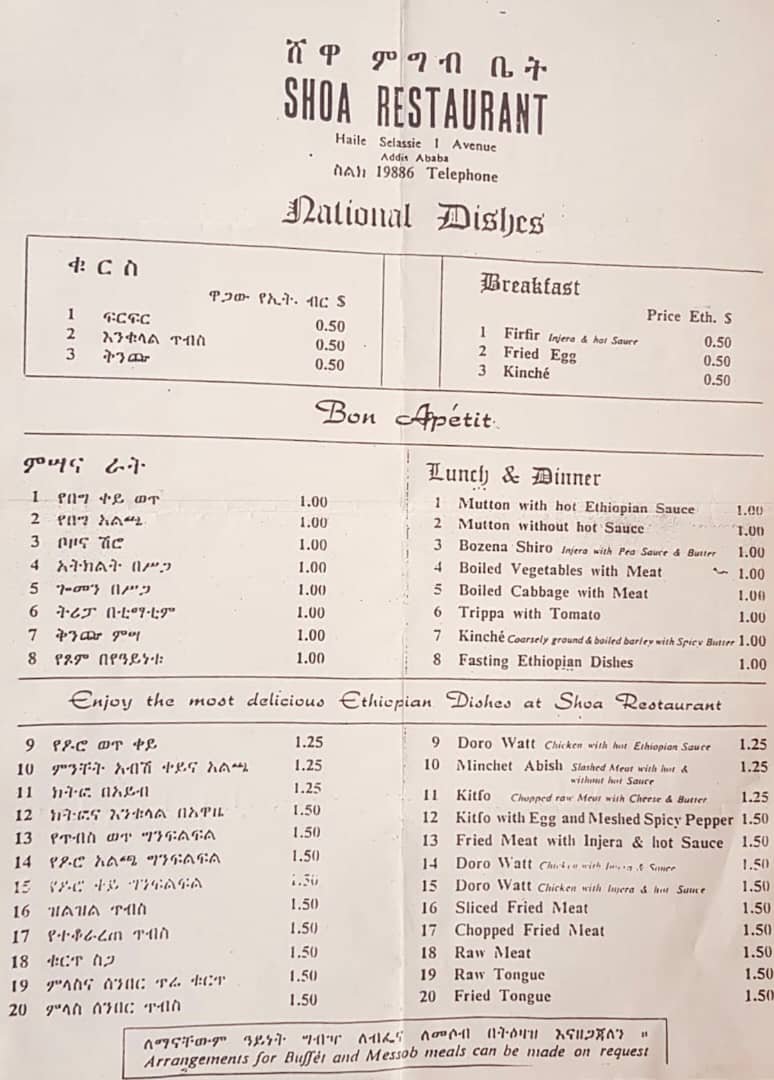 Restaurant food menu of the time